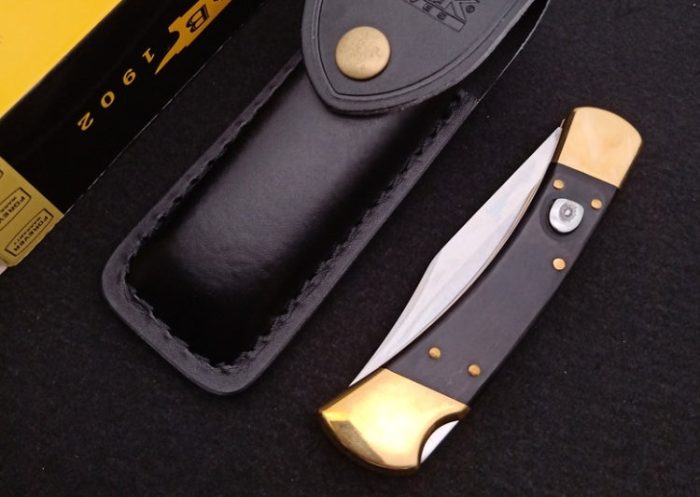One copper handle rivet black acid branch solid wood Buck 110 automatic folding knife new version, exquisite hand, super practical
