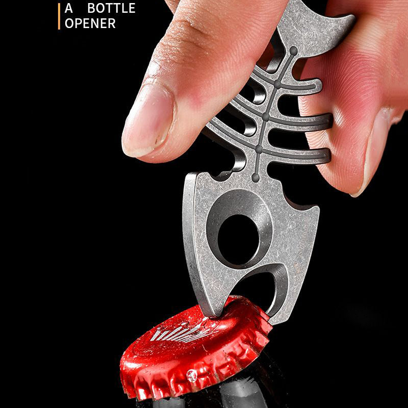 Multifunctional Fishbone Bottle Opener Titanium Self Defense EDC Tool