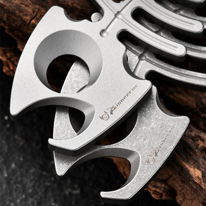 Molded in one piece from titanium, it can be used not only for self-defense and bottle-opening, but is also a beautiful decoration that can be hung on your chest or backpack.