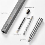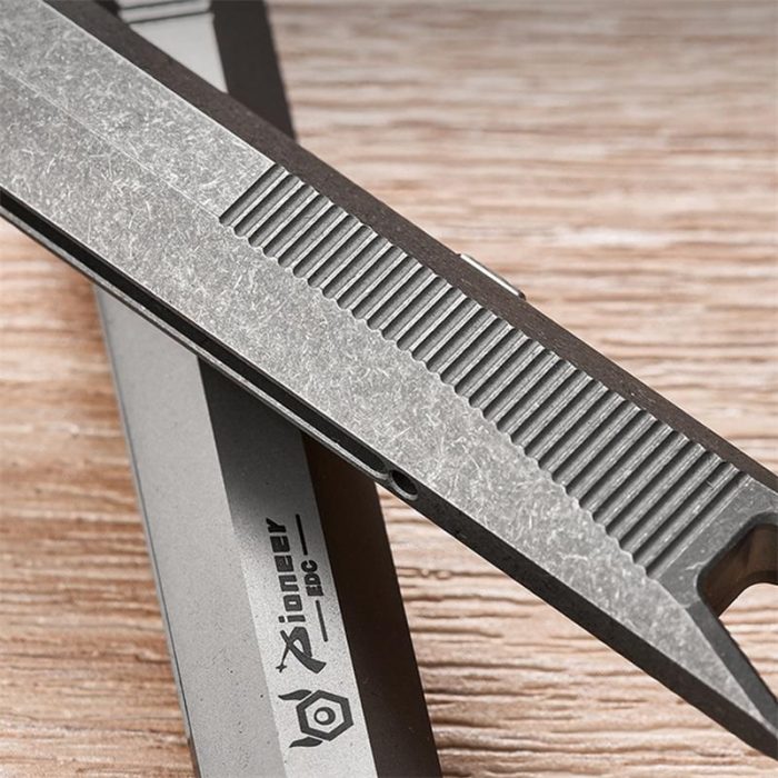Made of titanium alloy CNC precision processing, push-type sliding switch, can self-decompression, tail crowbar design, can easily lift nails, bottle caps, etc. The pen body has a non-slip thread design, and the edges and corners are rounded and polished, which is more comfortable to use.