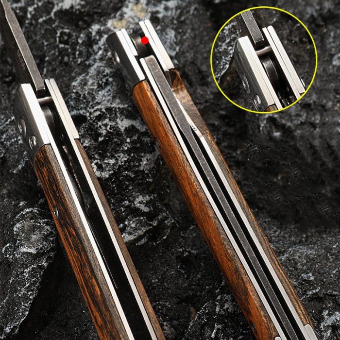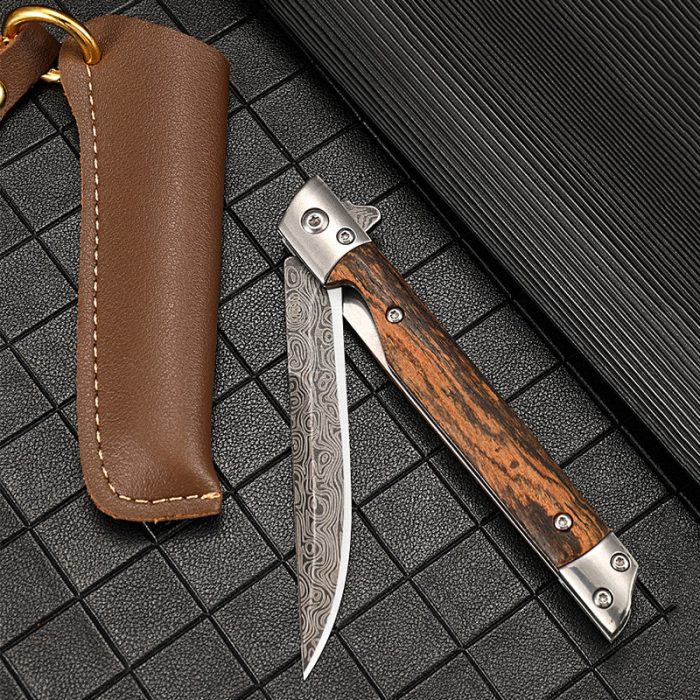Wood Handle Folding Knife Damascus Pattern Camping Pocket Knives